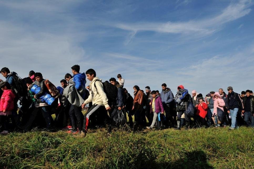 Një grup emigrantësh në pritje të kalimit të kufirit