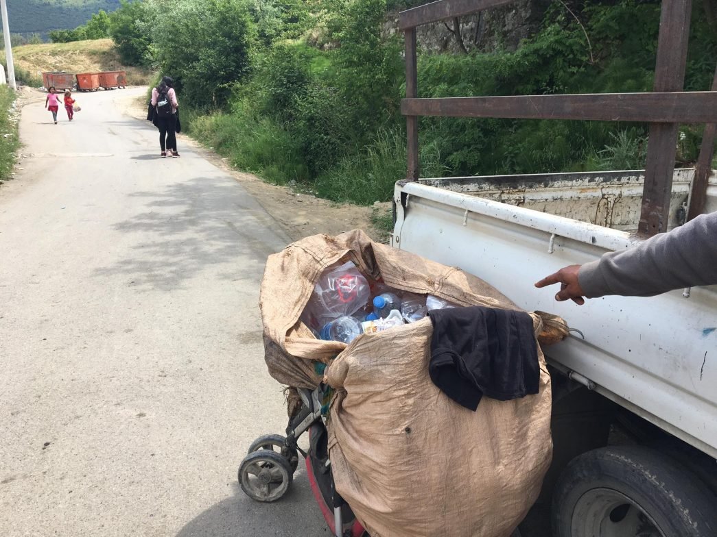 Fëmijë të komunitetit Rom, duke u përgatitur për një ditë punë në mbledhjen ë shisheve dhe kanaçeve, Tiranë, 31 maj 2021