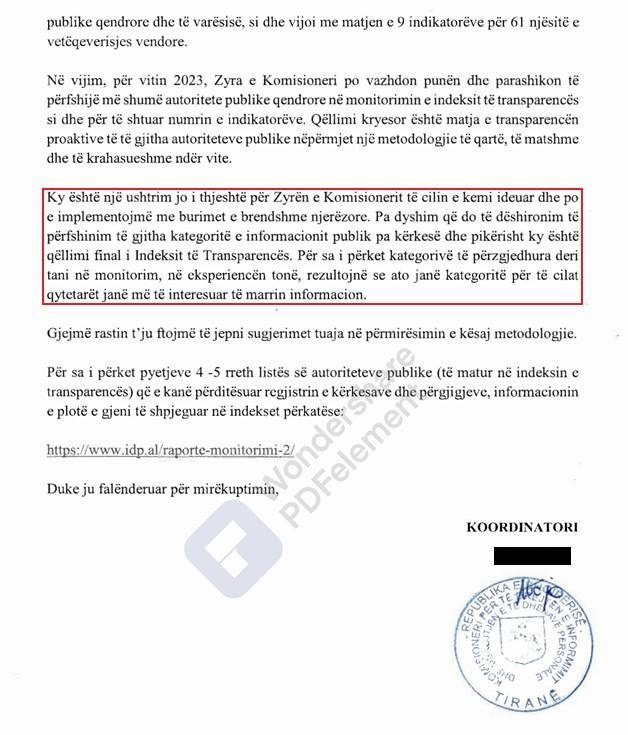 Por, a është edhe qëndrimi i Komisionerit pjesë e së njëjtës taktikë? Zyra nuk e pa të arsyeshme të përgjigjej, duke e mbyllur njëherë e përgjithmonë këtë diskutim jashtëzakonisht të vlefshëm për llogaridhënien dhe kontributin e medias si rojtar i sigurisë publike. Zgjerimi i të dhënave dhe përpunimi i tyre, falë zhvillimit teknologjik, është një armë e jashtëzakonshme në duart e gazetarisë hulumtuese për të zgjeruar kufijtë e transparencës dhe të llogaridhënies së qeverisë. Roli i tyre nuk kufizohet vetëm në begatimin e ekosistemit gazetaresk, por njëkohësisht ato shërbejnë edhe si një mekanizëm komunikimi, që zhvillon vetëdije dhe emancipim sipëror.