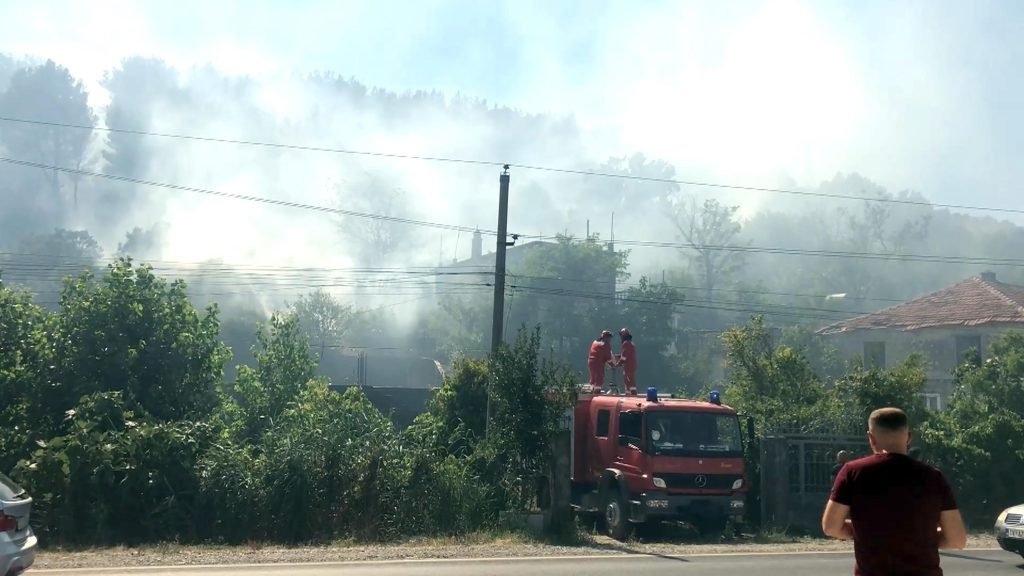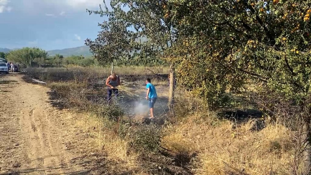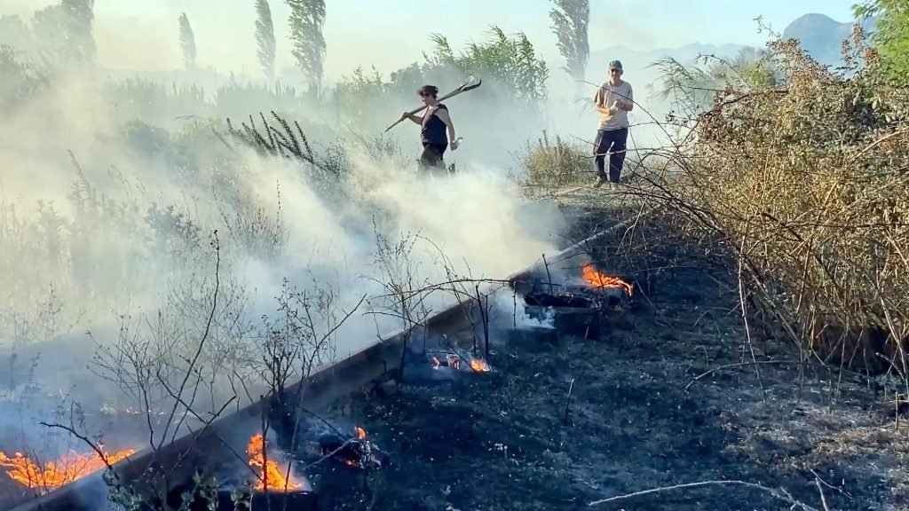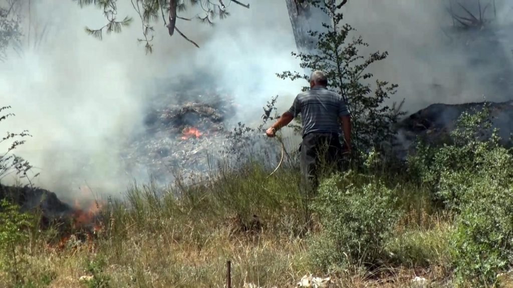 Banorët në Troshan të Bashkisë Lezhë duke u përpjekur të shuajnë zjarrin