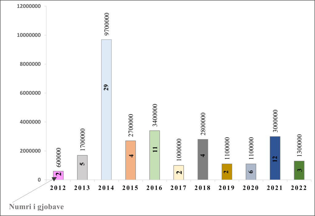 Gjatë vitit 2022 në zyrat noteriale janë hartuar 9626 deklarata për njohje të borxhit, ndërsa vetëm për 9 muajt e parë të vitit 2023 (nga data 1 janar-deri më 30 shtator) janë hartuar 7504 deklarata të tilla. Në këtë shifër nuk përfshihen kontratat e huas, të cilat janë me kamatë (interes).