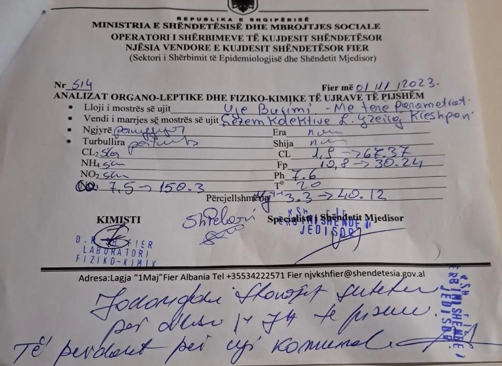 “Uji mund të mos jetë i sigurt për t’u pirë. Rezultatet e analizës së ujit tregojnë probleme të rëndësishme me cilësinë mikrobiologjike, pasi numri i kolonive bakteriale i kalon shumë kufijtë. Prania e baktereve Coliform është një shqetësim i rëndësishëm. Duhet të merren masa të menjëhershme të trajtimit dhe të dezinfektimit të ujit”, – sugjeron Korançe.