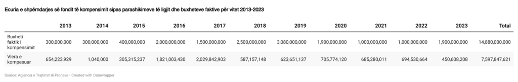 Për rrjedhojë, nga totali i fondit prej 50 miliardë lekësh për 8 vitet e para të zbatimit të tij duhet të ishin shpërndarë për ish-pronarët rreth 35 miliardë lekë, por shuma faktike, e shpërndarë nga viti 2016 deri në vitin 2023, rezulton se është 76% më pak nga sa ishte parashikuar.