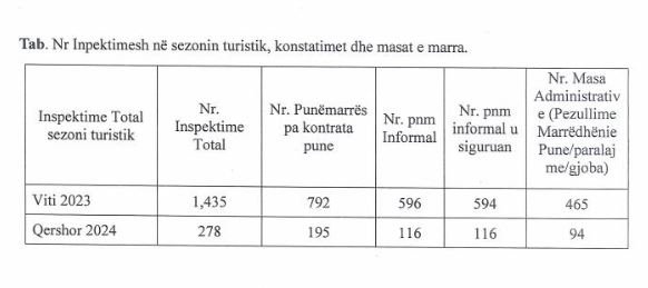Punësimi në të zezë dhe informaliteti në të gjitha format, që kulmon në hoteleri-turizëm gjatë sezonit turistik, e ka shtyrë Inspektoratin që ta bëjë pjesë të planifikimeve për monitorim këtë sektor. Vetëm në gjashtë muajit e parë të këtij viti janë ushtruar 278 inspektime në total nga inspektorët, ku janë identifikuar 195 punonjës pa kontratë pune dhe 116 të tjerë, tërësisht informalë.