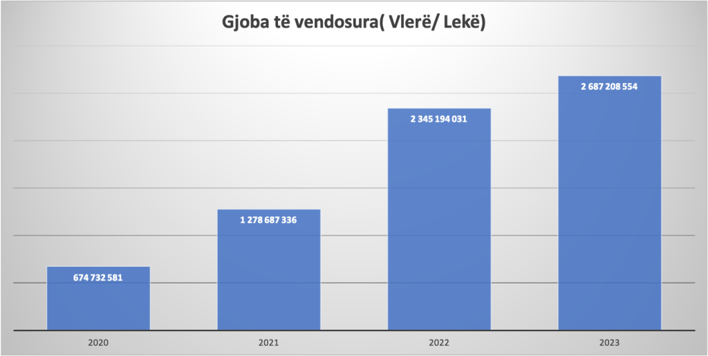 Për periudhën 2020-2023, ndëshkimet për drejtuesit e automjeteve janë katërfishuar. Sipas të dhënave të siguruara nga “INA Media” përmes një kërkese për informacion në Policinë e Shtetit, këto gjoba janë vendosur vetëm nga Policia Rrugore për shkelje të rregullave të qarkullimit rrugor me qëllim sensibilizimin për të reduktuar numrin e aksidenteve. Megjithatë, po sipas të dhënave zyrtare, numri i aksidenteve gjatë të njëjtës periudhë rezulton i njëjtë, madje është rritur gjatë vitit 2023.