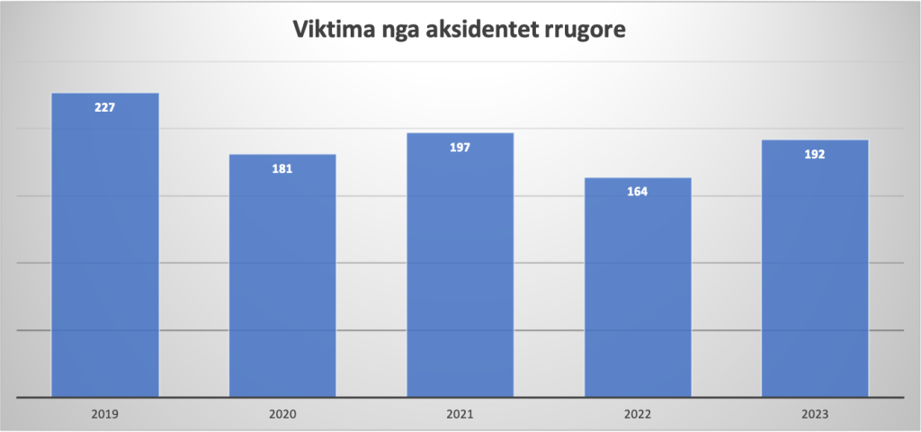 Referuar të dhënave zyrtare, në vitin 2019 pati 227 të vdekur nga aksidentet rrugore, një vit më pas, për shkak edhe të pandemisë, ku u aplikuan bllokime të lëvizjes për ditë të tëra, numri i personave që humbën jetën në aksidente zbriti në181, ndërkohë që një vit më pas u shënuan 197 viktima. Viti 2022 shënoi 164 viktima, kurse 2023-shi pati një bilanc më të rëndë me 192 viktima.