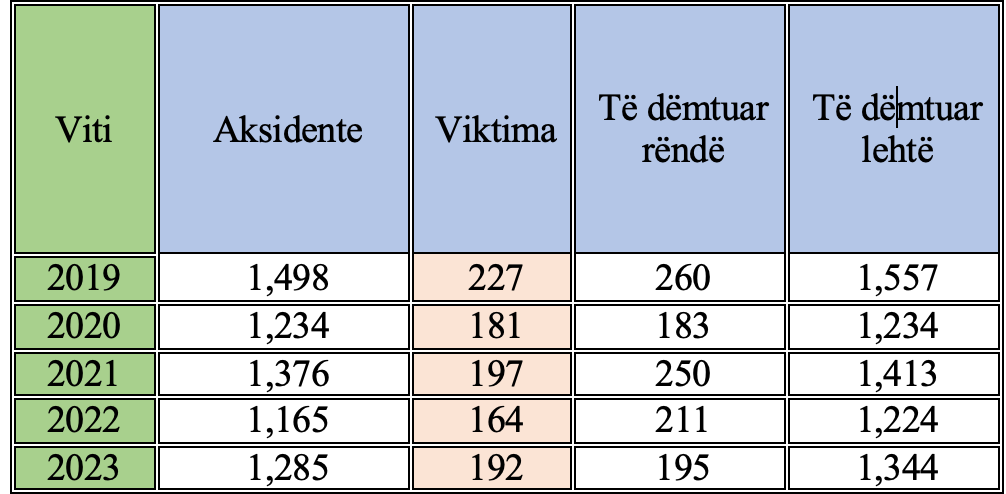 Gjatë pesë viteve të fundit, në Shqipëri janë shënuar rreth 1000 viktima dhe mbi 1200 të dëmtuar rëndë për shkak të aksidenteve rrugore, ndërkohë që INSTAT pasqyron një rritje të numrit të aksidenteve dhe të të dëmtuarve gjatë gjysmës së parë të këtij viti.