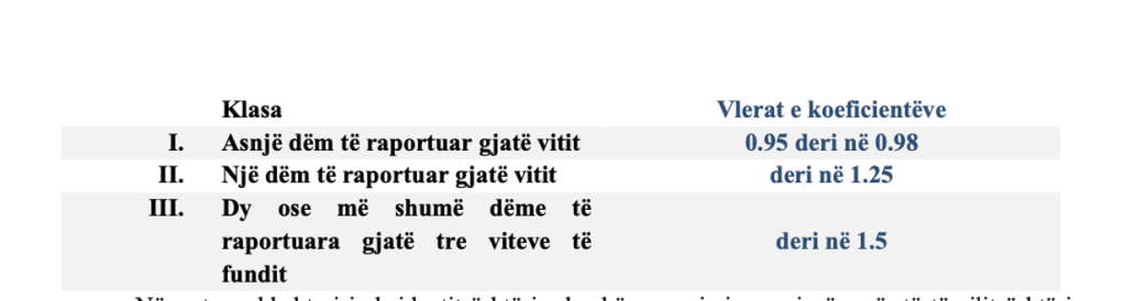 Sipas koeficientëve të mësipërm, çmimi i një police sigurimi mund të rritet deri në 125 për qind, por ulet jo më shumë se 18 për qind kur kemi të bëjmë me një drejtues dhe një automjet që përbëjnë rrezik të ulët në qarkullim.